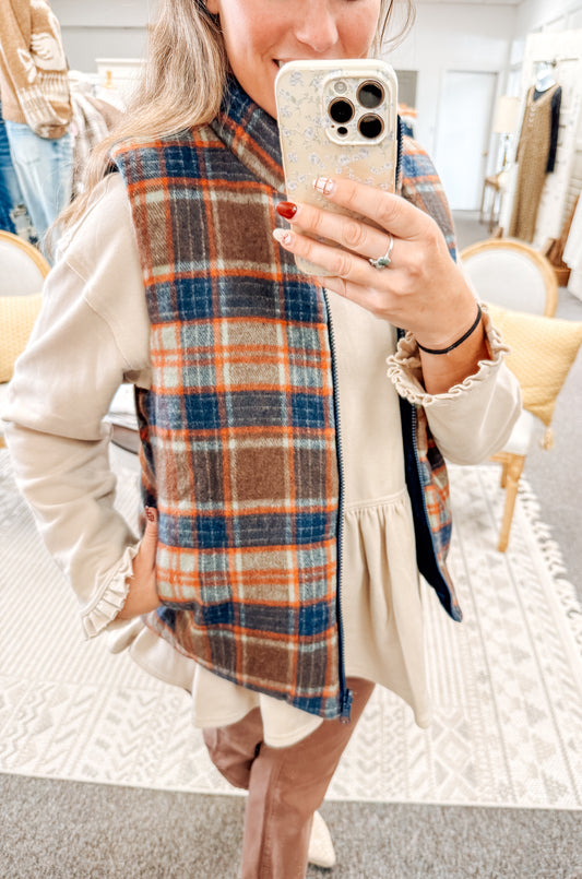 Plaid & Perfect Zip Reversible Vest (S-XL)