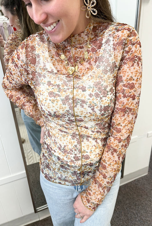 Sold outSheer Elegance Floral Mesh Top-Gold