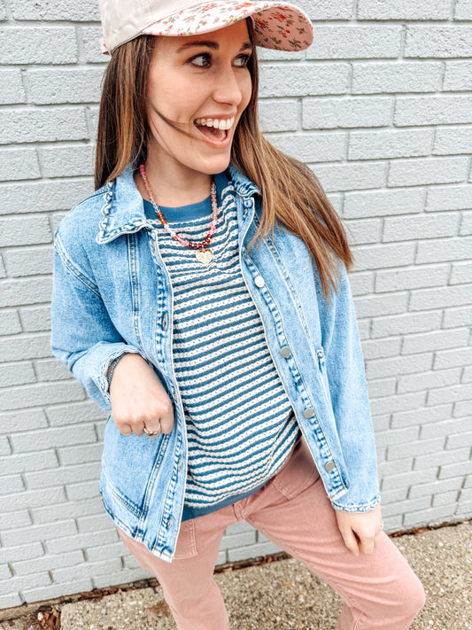 Layered with Scallops Denim Jacket (S-XL)