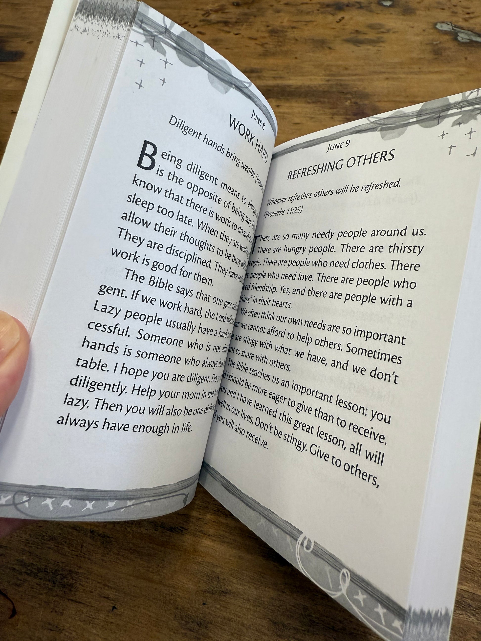One-Minute Devotions For Kids will guide young children to make wise decisions when they face challenges at school, home, or on the sports field. God's Word gives the best examples of what to do and say when facing challenging situations and teaches children how to follow in the footsteps of Jesus. Fun, bright cover design, Softcover, 635 daily devotions, 368 pages, Presentation page, Affordable, Suitable for ages 8-12, Size: 5.9” x 4” x 0.8” (150 x 102 x 20mm)