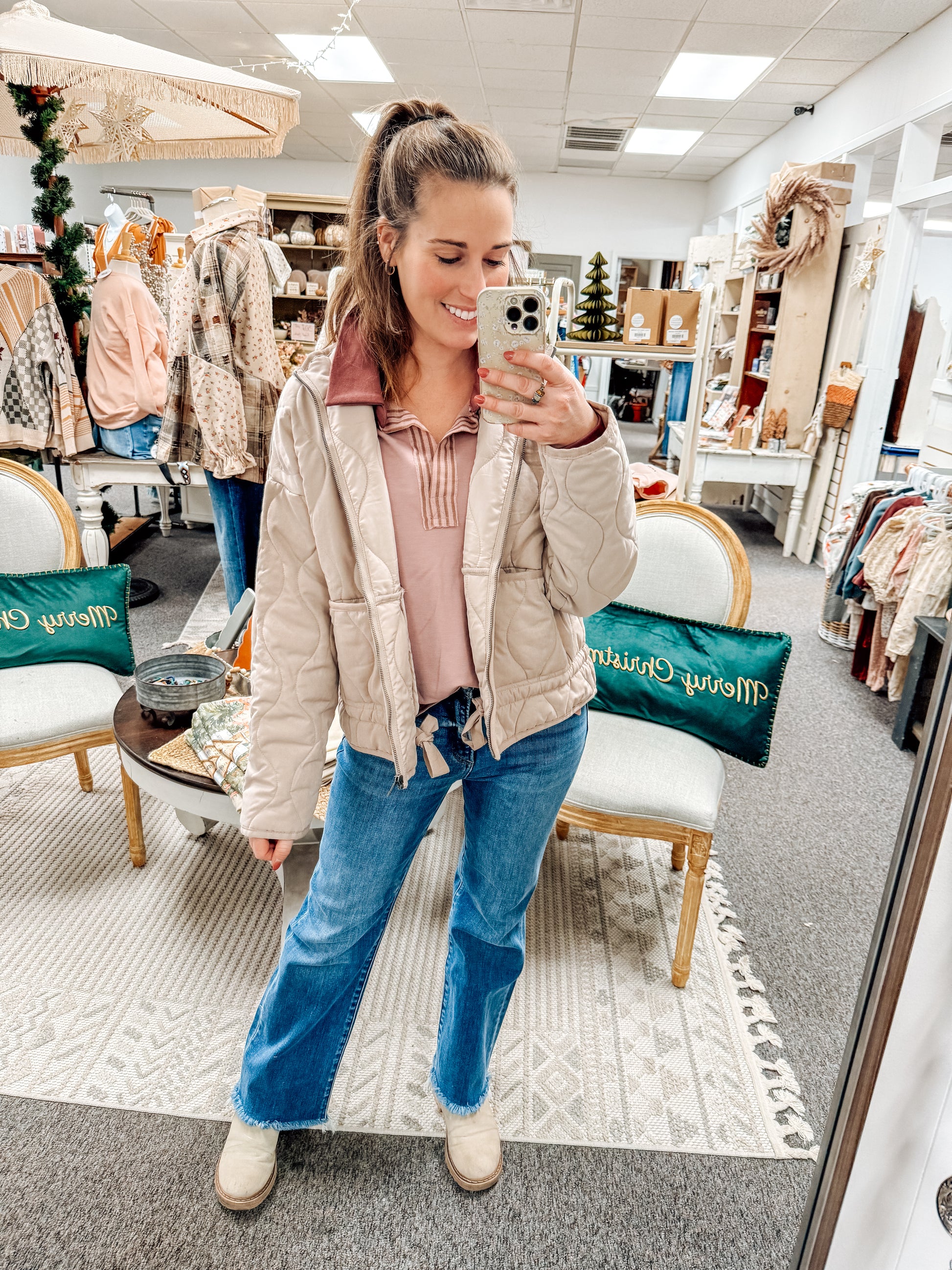 This trendy jacket delivers both style and comfort with its relaxed silhouette and structured quilting. The adjustable drawstring hem allows a customized fit, making it ideal for layering over turtlenecks or casual tees. Perfect for colder months, it pairs effortlessly with high-waisted jeans and ankle boots to create a chic urban look. Refresh your winter wardrobe with this versatile outerwear piece that combines functionality and modern fashion.