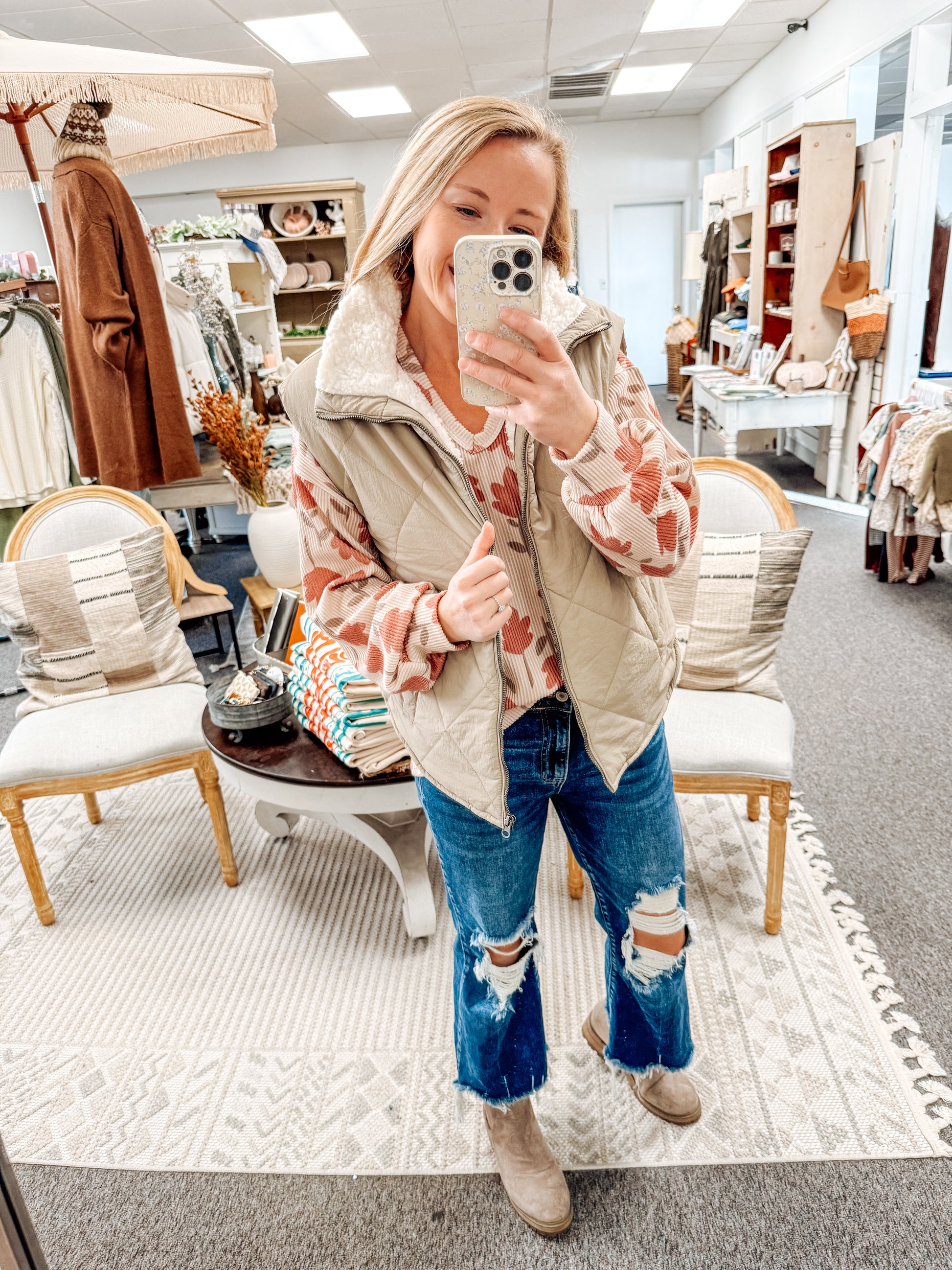 Stay warm and comfortable with the Cool Breeze Chill Vest. Designed with a high collar and quilted exterior, this sleeveless vest offers added warmth without restricting movement. The soft fleece lining provides cozy insulation, while convenient pockets keep essentials close at hand. A contrast lining adds a subtle style touch to this practical layering piece, perfect for breezy days when you need extra warmth without bulk.
