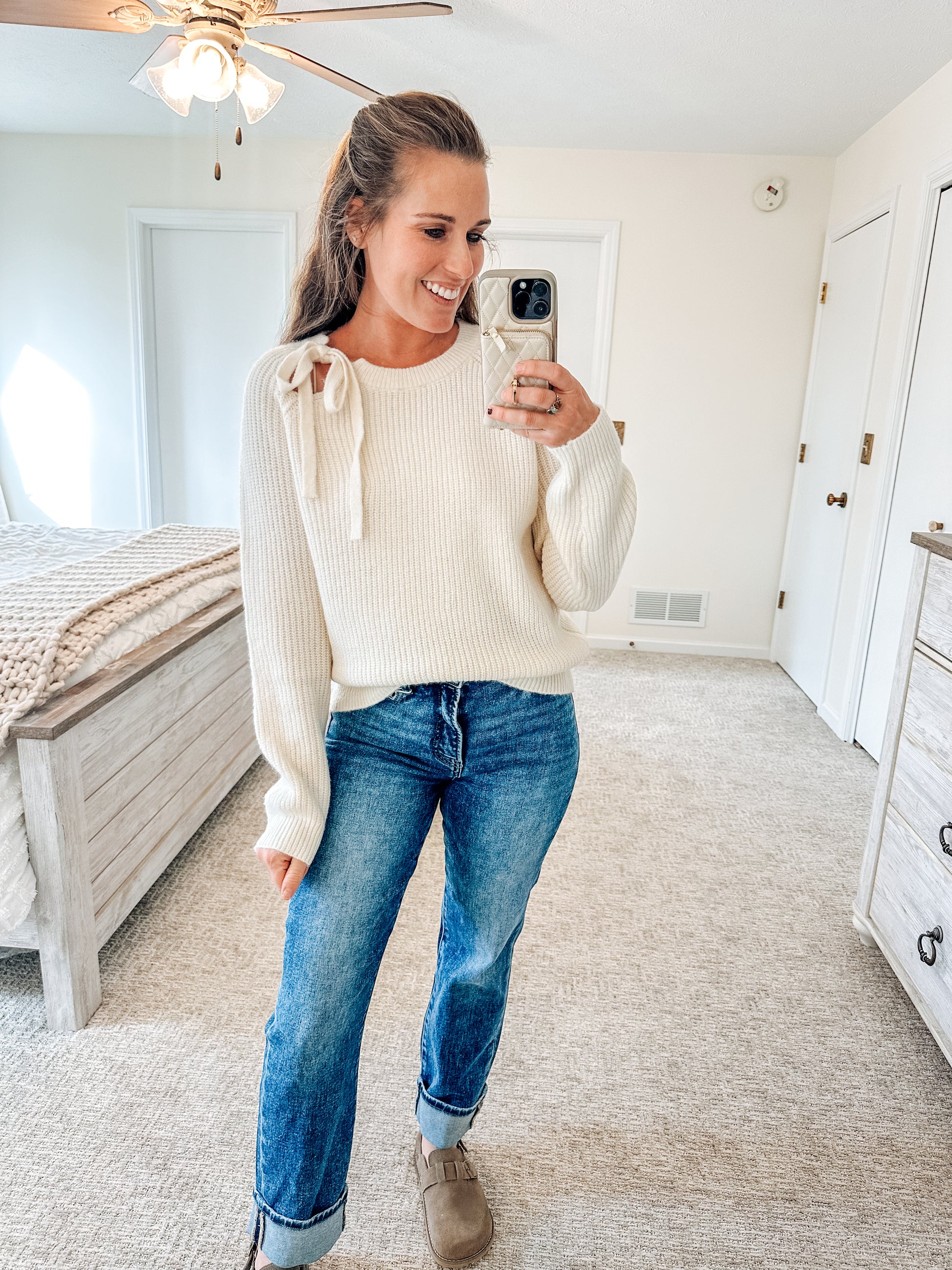The Cozy Haven Cut Out Sweater offers a stylish twist with its unique tie detail neckline and flattering cutout design. Made from soft, comfortable fabric, this pullover keeps you warm while adding an elegant touch to any outfit. Perfect for layering or wearing solo, it effortlessly combines cozy comfort with modern chic.