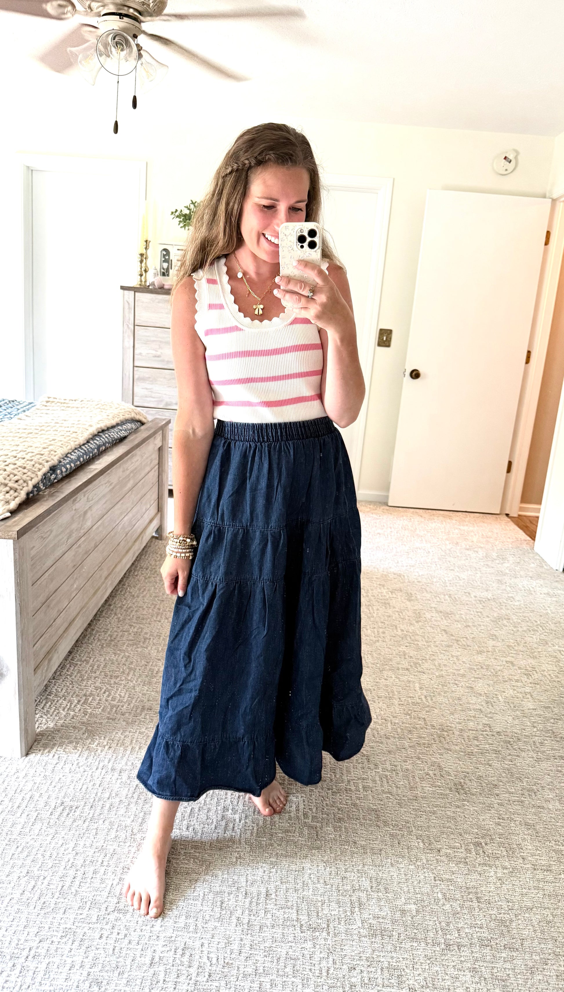 Step out in style with the Denim Is Always In Style Midi Skirt! This playful wardrobe staple pairs effortlessly with your favorite tops, offering a flattering fit that moves with you. Perfect for casual days or dressy nights, it’s the skirt that proves denim never goes out of fashion.