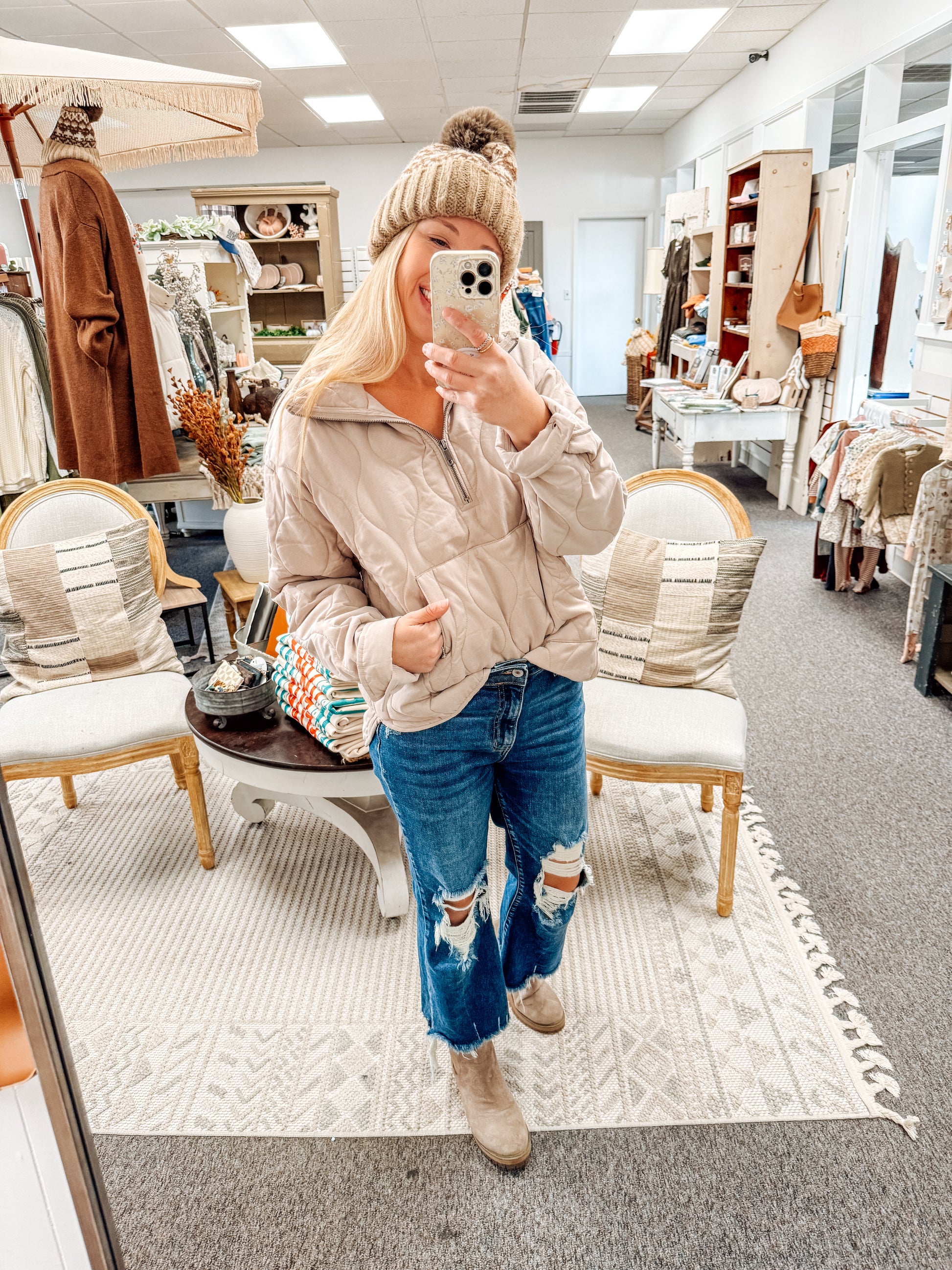Frost & Stitch Quilted Pullover-Dk Taupe