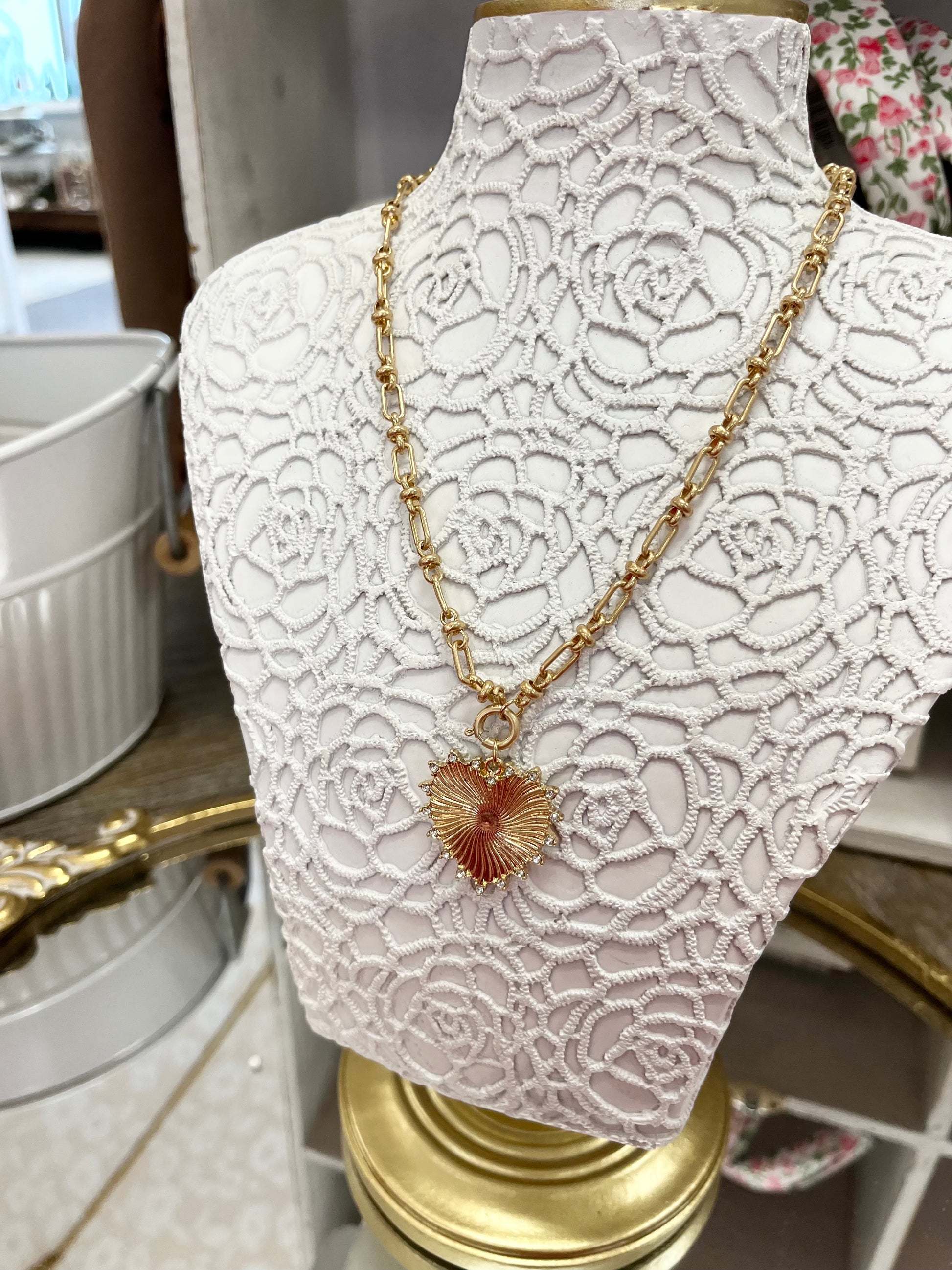 Wear your heart on your neck with this Heart Of Gold Necklace. Made of shining gold material, this necklace will add a touch of love to any outfit. Perfect for expressing your feelings, or just as a cute accessory. (Seriously, it's pretty adorable.)