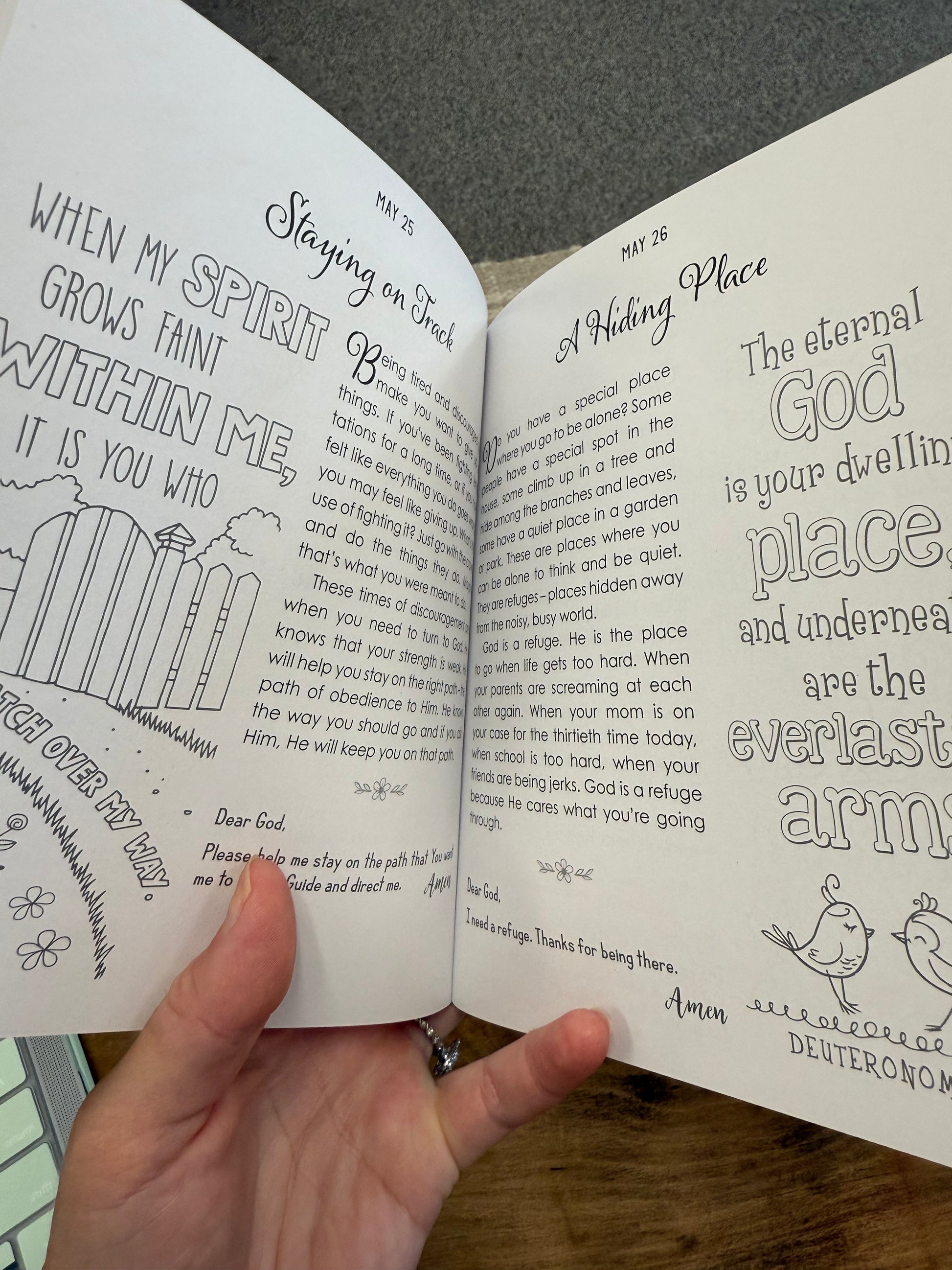 Hot off the press and perfect for your favorite young girl! The Illustrated Devotional for Girls is more than just a gift; it's an experience that will enrich her year. With 366 short devotionals, she's covered every day—even leap years! And it doesn't stop at reading; as she colors in the irresistibly cute Scripture graphics, their uplifting messages will resonate deeper, leaving a lasting impact for years to come! Pink cover with silver-foiled hearts and flowers, Softcover, Pink and silver-foiled title, Crisp black ink on bright white insides, Thick paper so color won't bleed through, 388 pages, 366 devotions, Suitable for pre-teens, Suitable for ages 8-12, Size: 7" x 6.1" x 1" (178 x 155 x 25mm)