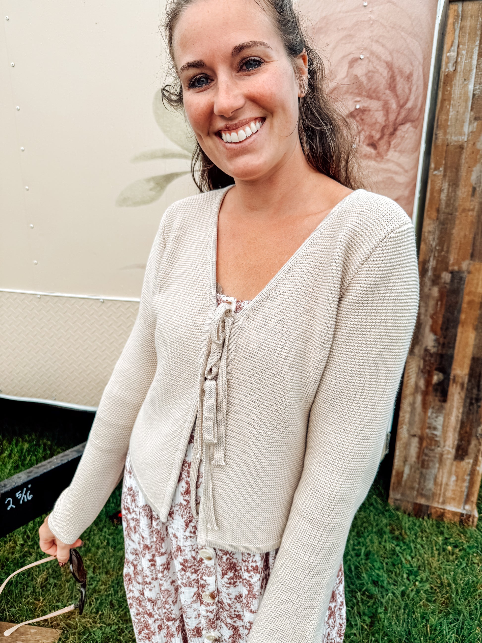 The Ivory Ease Knit Cardigan offers cozy comfort with a stylish tie-front design that enhances your silhouette while keeping you warm. Its soft knit fabric feels gentle against the skin, making it perfect for layering on cooler days. This versatile cardigan effortlessly blends casual and chic, providing a reliable go-to for everyday wear.