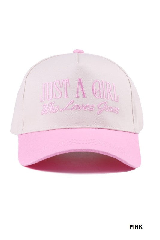 JUST A GIRL WHO LOVES JESUS TWO-TONE CANVAS COTTON CAP
