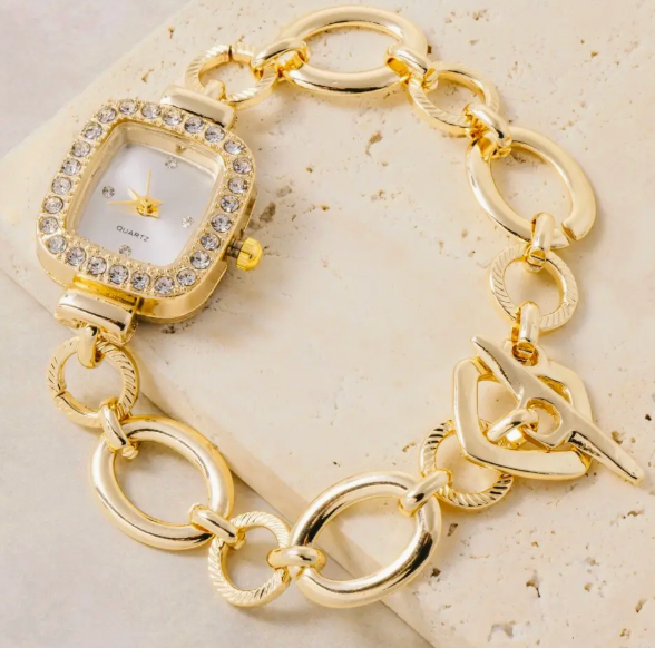 Stay punctual in style with the Keeping Time Watch, a timeless gold timepiece that blends functionality with elegance. This classic accessory works beautifully with any outfit, from professional settings to weekend adventures. The warm gold finish adds a touch of sophistication to your wrist while keeping you on schedule throughout your day. Perfect for those who appreciate quality craftsmanship and enduring design, this watch serves as both a practical tool and a statement piece. An ideal gift for someone who values reliability and refined taste.