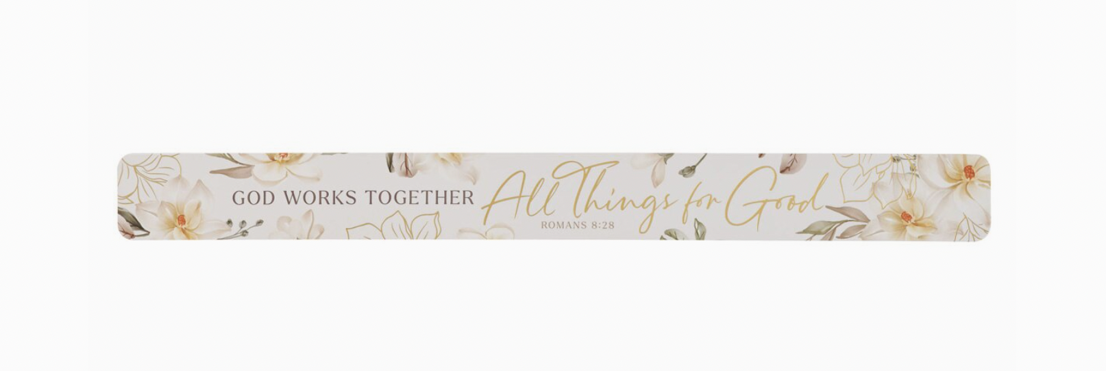 The All Things for Good White Magnolia Large Magnetic Strip is a soft and steady reminder that God is always working out His plans for good in your life—even when life feels uncertain. Place this motivational magnetic strip on a metal front or back door, near the handle, so you see this truth every time you step out into the world.