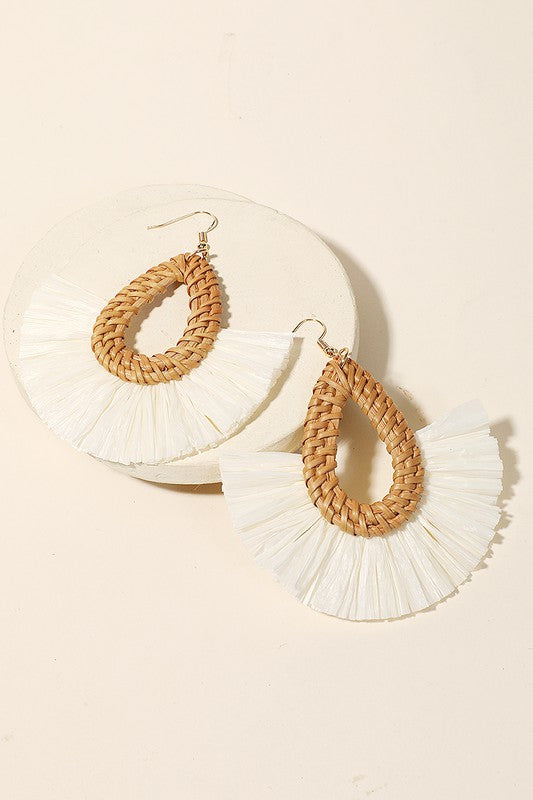 This stunning must have pair of earrings has a gorgeous braided teardrop fan earrings design. Fits well with almost any outfit! Available in IV and TA.