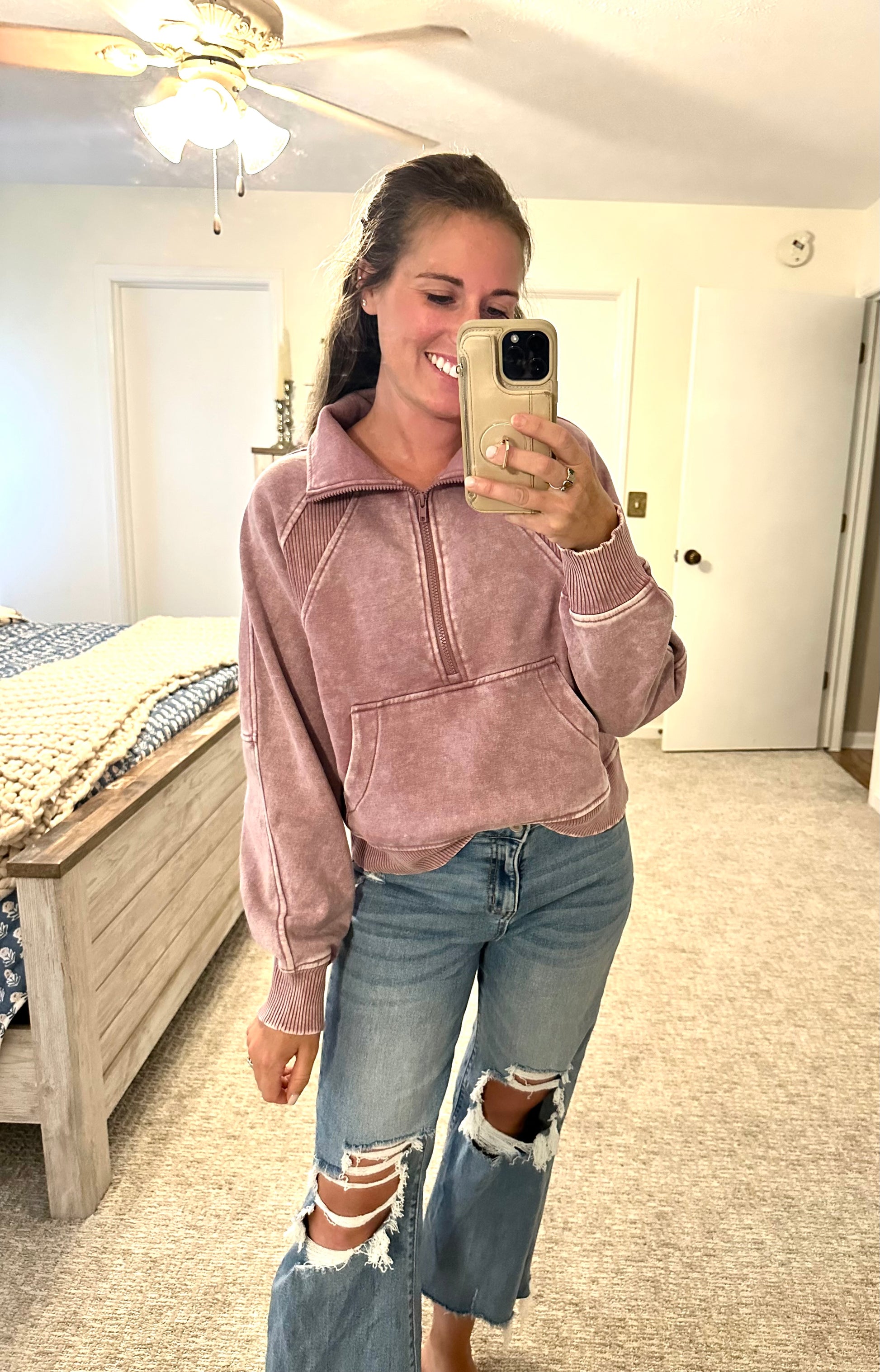 Stay cozy and stylish with the Mineral Mood Half Zip Pullover. Featuring a soft acid-washed fleece and a convenient half-zip design, this pullover offers warmth and easy layering. The kangaroo pocket adds practicality, perfect for keeping your hands warm or storing essentials. Ideal for casual outings or relaxing at home, it combines comfort with a trendy, lived-in look you'll love.