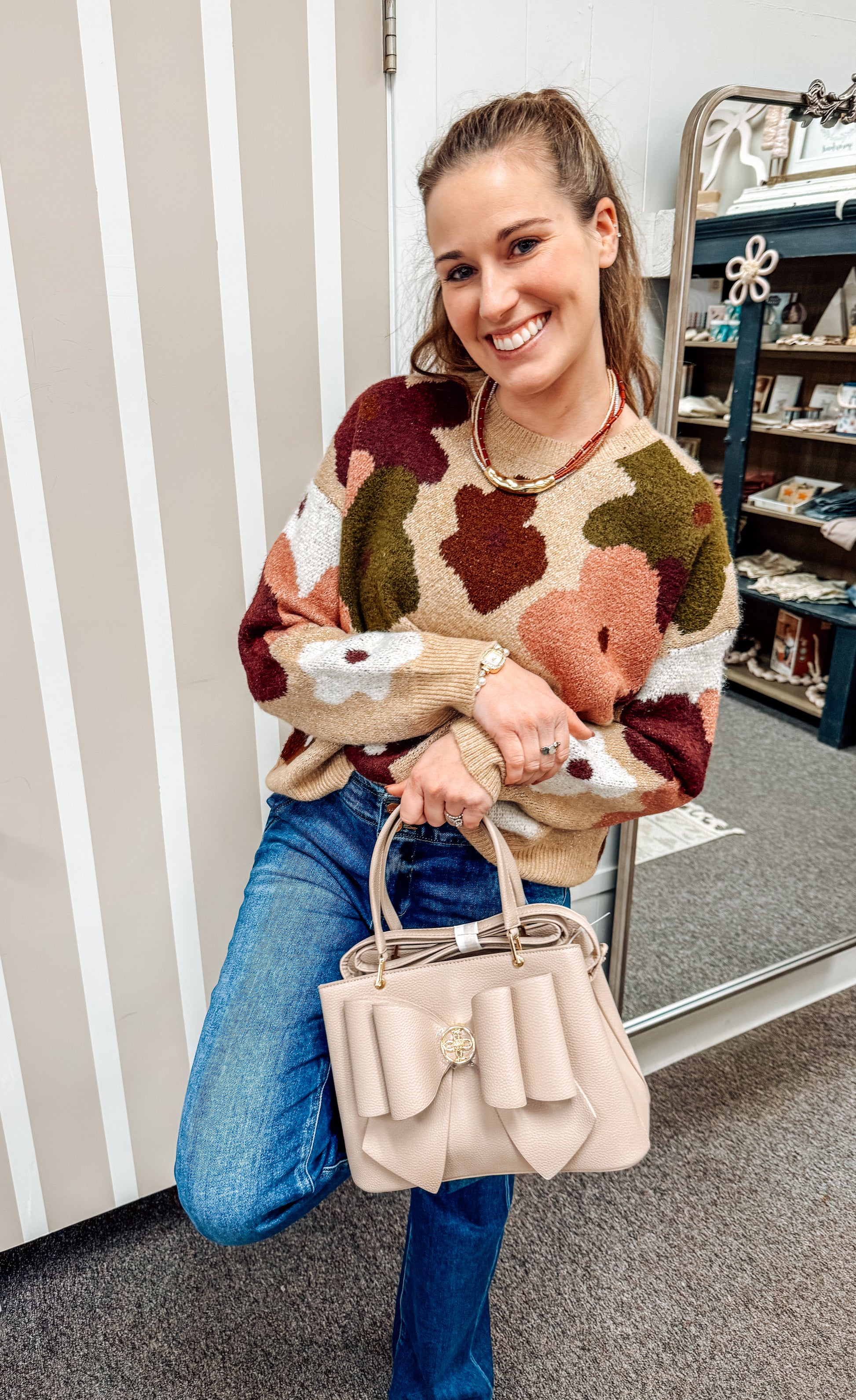 Brighten your wardrobe with this flower patterned sweater top, perfectly balancing cozy comfort and eye-catching style. Its vibrant floral print adds a touch of freshness, making it ideal for everyday wear or special occasions. Soft and flattering, this sweater top keeps you warm while showcasing your unique fashion sense. Experience effortless elegance with this standout piece that easily pairs with your favorite jeans or skirts.