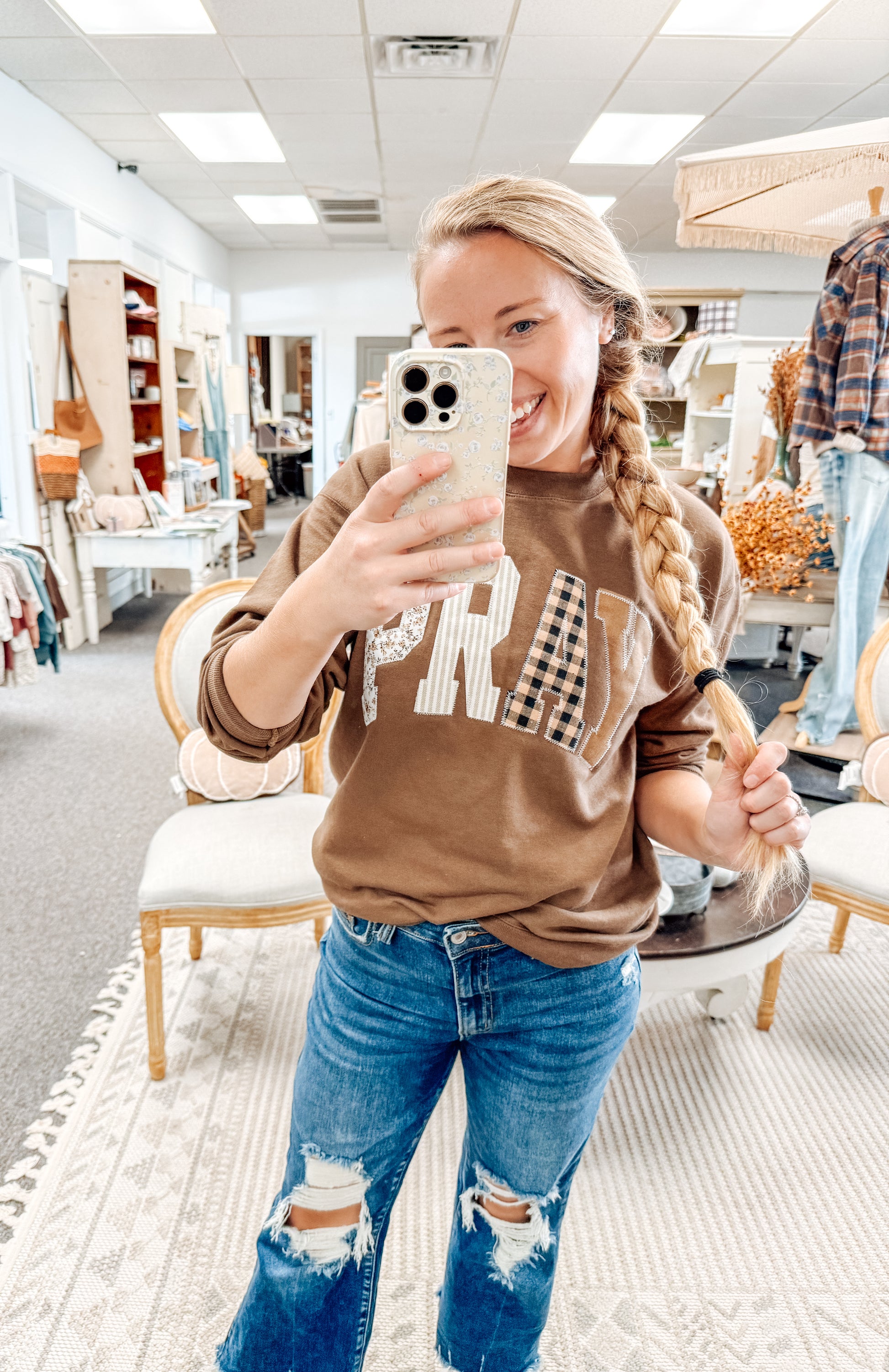 Cozy crew featuring embroidered PRAY letters! Unisex fit, recommended to hand wash