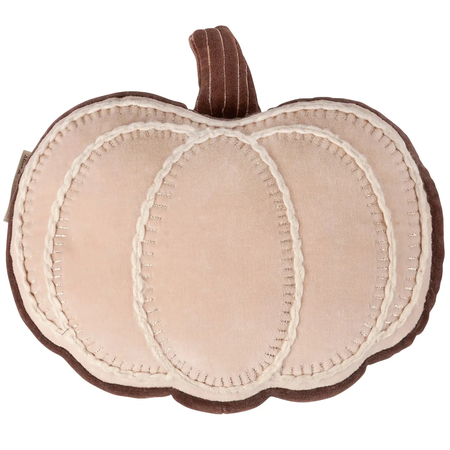 A decorative pillow from our Fall & Harvest Collection in the shape of a pumpkin. Pumpkin design features velvet material in a blush inspired fall color palette with metallic thread details throughout. Our Pumpkin shaped pillow contains polyester filling and is shipped vacuum-sealed for protection and storage. A blush inspired fall home accent perfect for seasonal use.