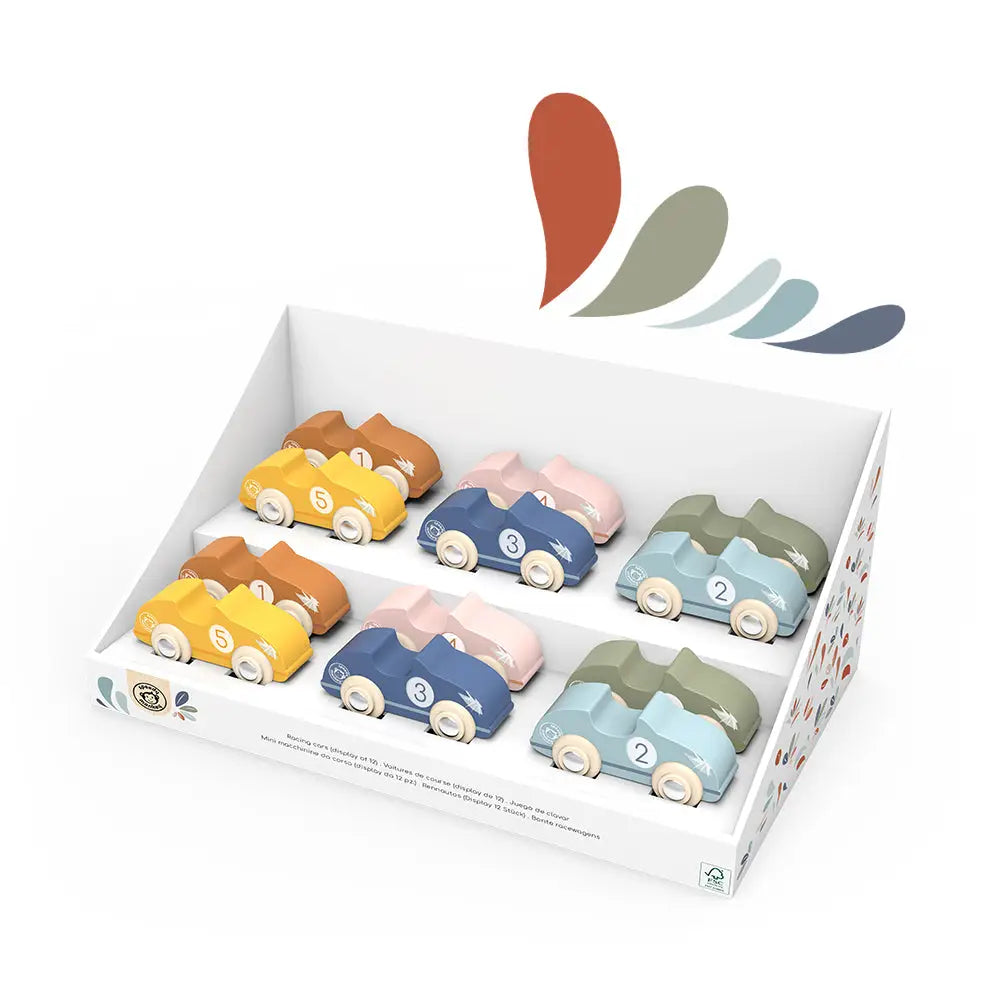 Introducing Racing Cars display! Get ready to race into fun with the Racing Cars Display, a vibrant set of wooden cars built for speed, imagination, and hands-on play! Perfect for toddlers 12 months and up, this colorful display features multiple racing vehicles designed to inspire endless trackside adventures and motor skill development. Whether it’s zooming across the floor or staging exciting races, kids will love the simple shapes and easy-to-grip design of these cars. The smooth wheels and durable build encourage active play, while helping develop fine motor skills, coordination, and creative thinking.
