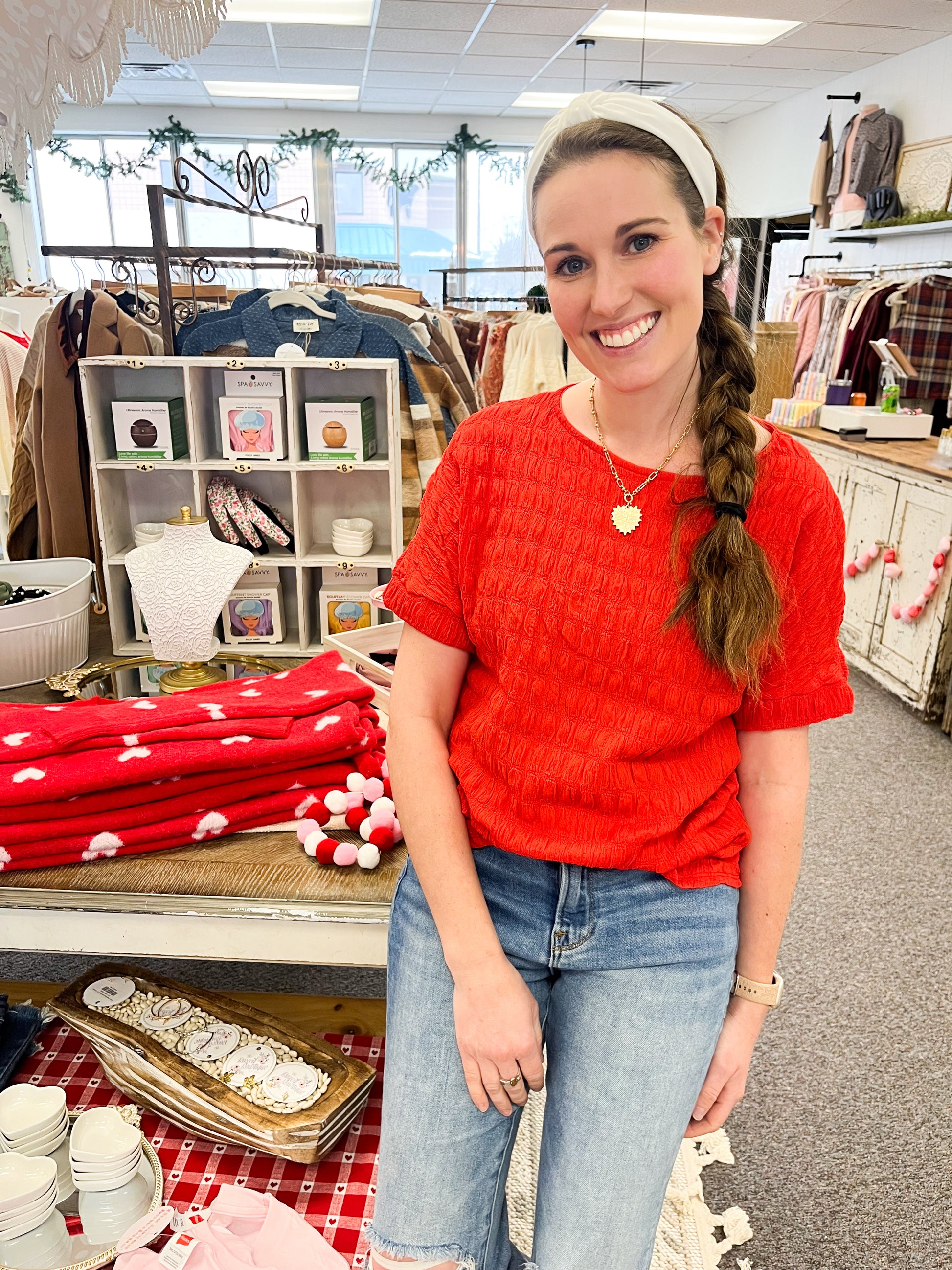 Get ready to relax and slay in our Red Delicious Textured Top. Its relaxed fit, textured fabric, and short sleeves are sure to keep you comfortable while looking stylish. Perfect for any occasion, from casual to dressy. Available in sizes S-XL. Don't miss out!