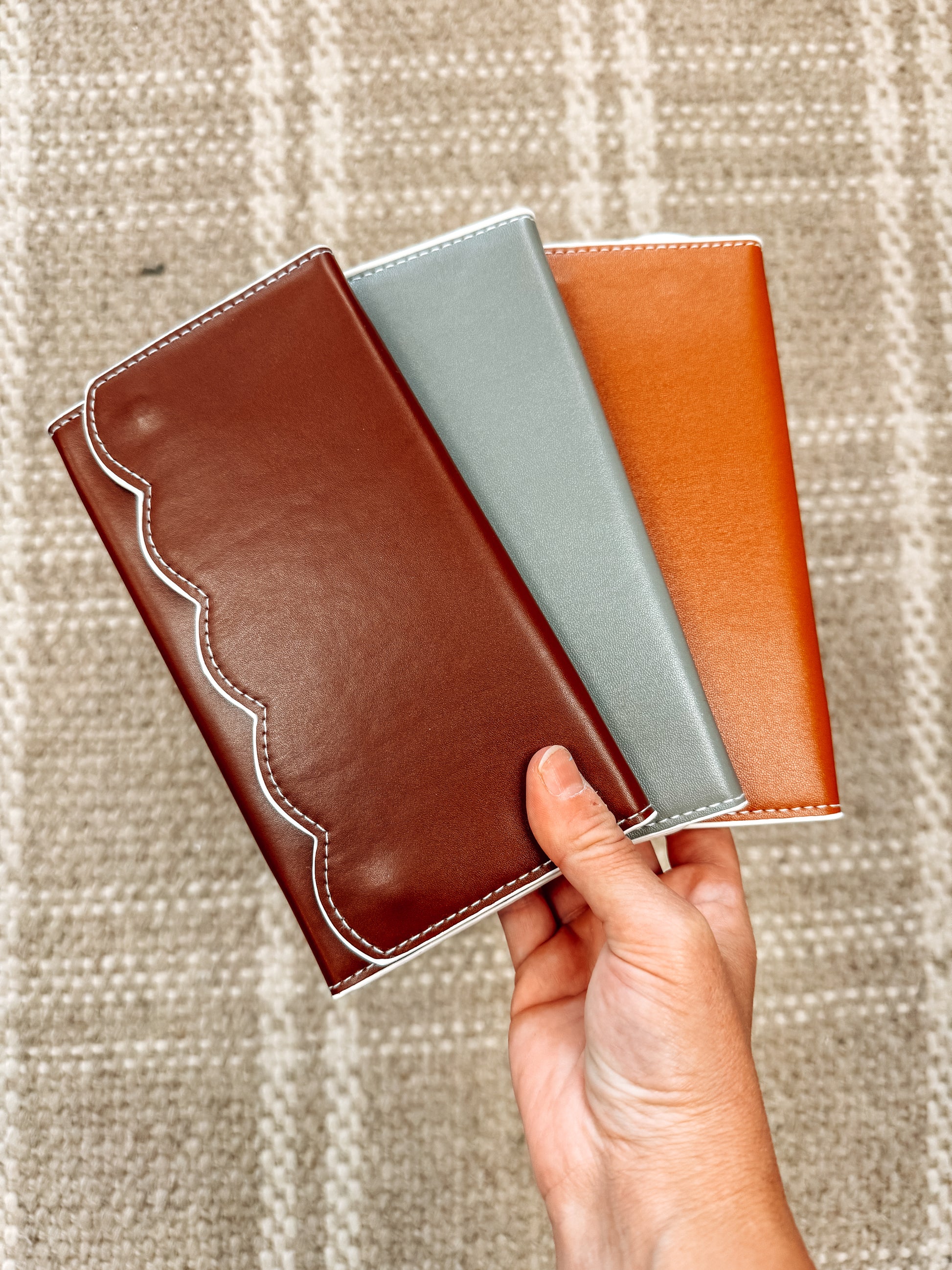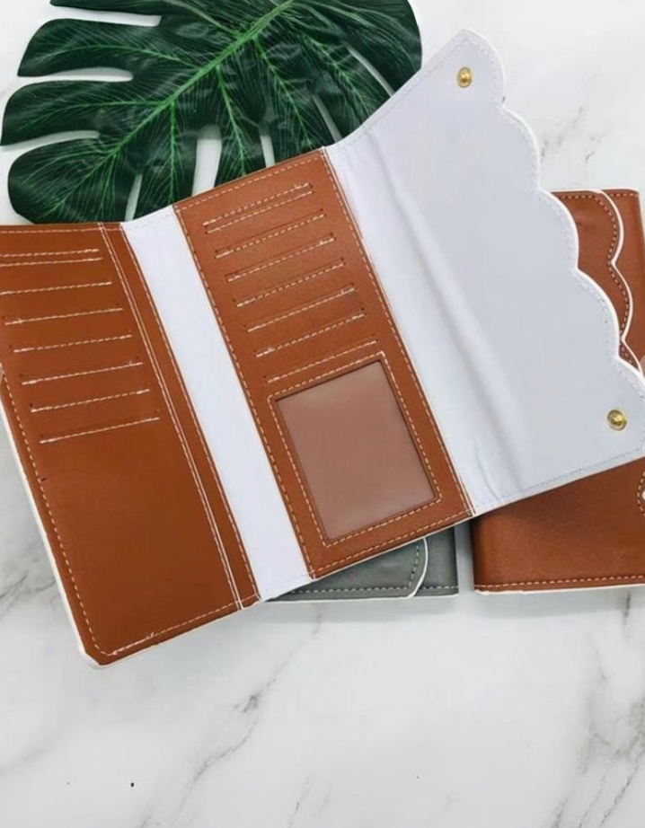 -VEGAN LEATHER SCALLOPED -TRI FOLD -HOLDS MULTICARDS -LONG OPEN SLOTS -SNAP CLOSURE -PORTABLE AND MULTIFUNCTIONAL -ON THE GO -SIMPLE TRENDY DESIGN -LENGTH: 7.87", HEIGHT: 4.33", WIDTH: 0.79"