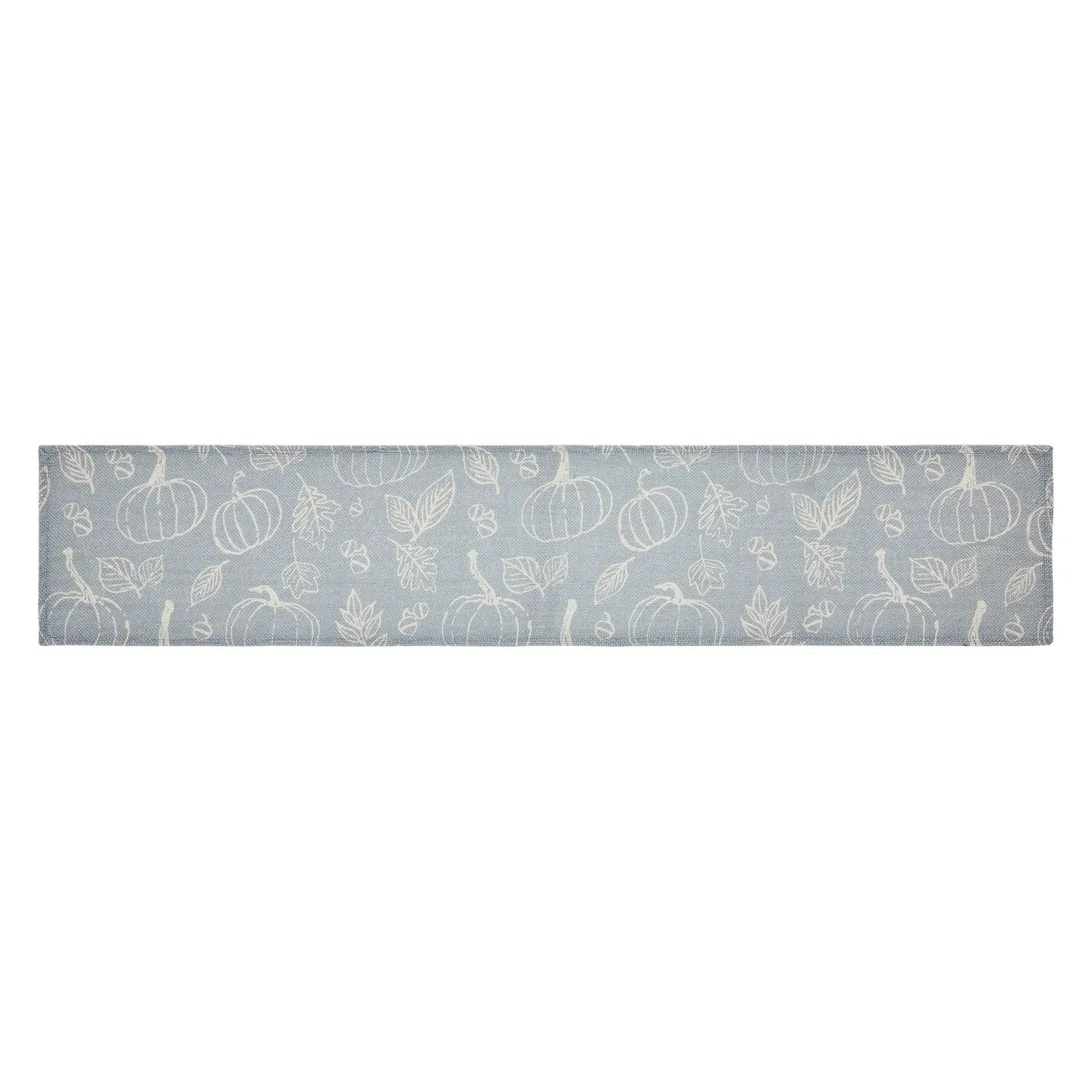Give your tabletop decor a seasonal upgrade with modern colors and a classic Thanksgiving motif. The Silhouette Pumpkin Grey Runner measures 12 by 60 inches and features a dark grey base in recycled plastic (PET) material. The Thanksgiving table runner features a whimsical pattern with ivory pumpkins, leaves and acorns.