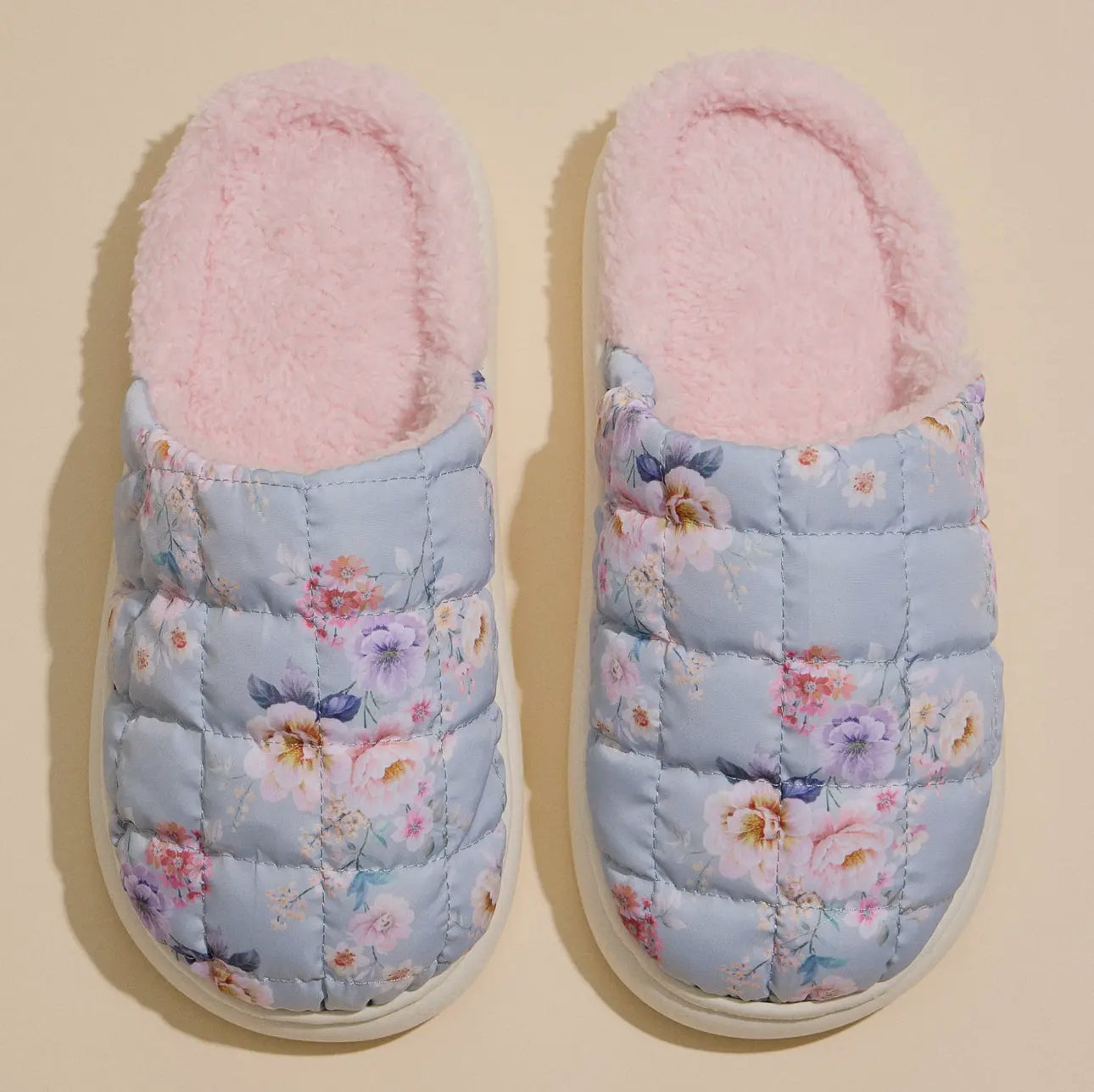 Slip into Florals Slippers - The perfect choice for those who love a bit of floral flair in their life! Featuring a quilted design that adds texture and a touch of elegance, these ultra lightweight slippers are the perfect blend of comfort and style. Say goodbye to heavy and boring slippers, and hello to a fun and playful addition to your everyday routine!