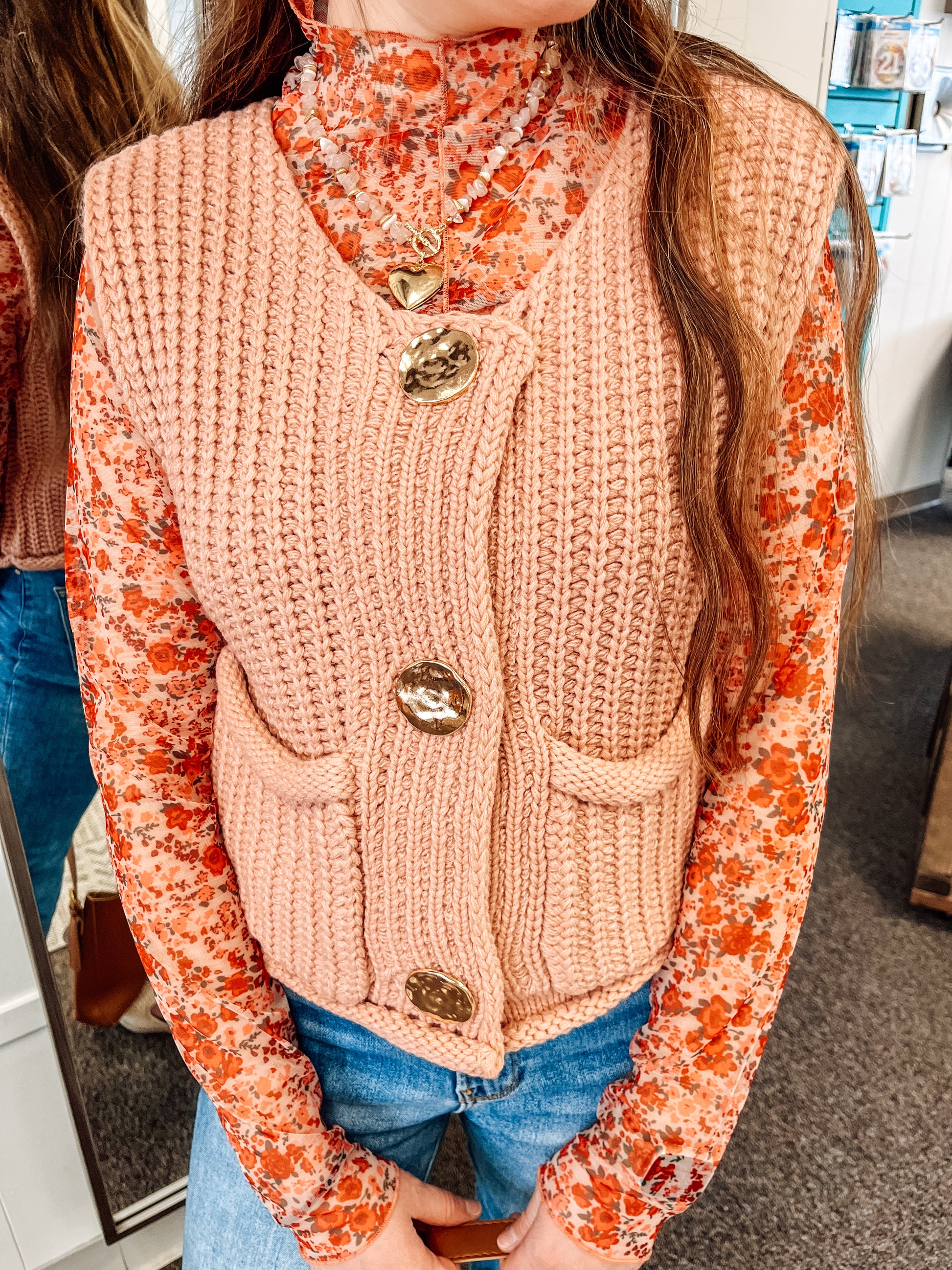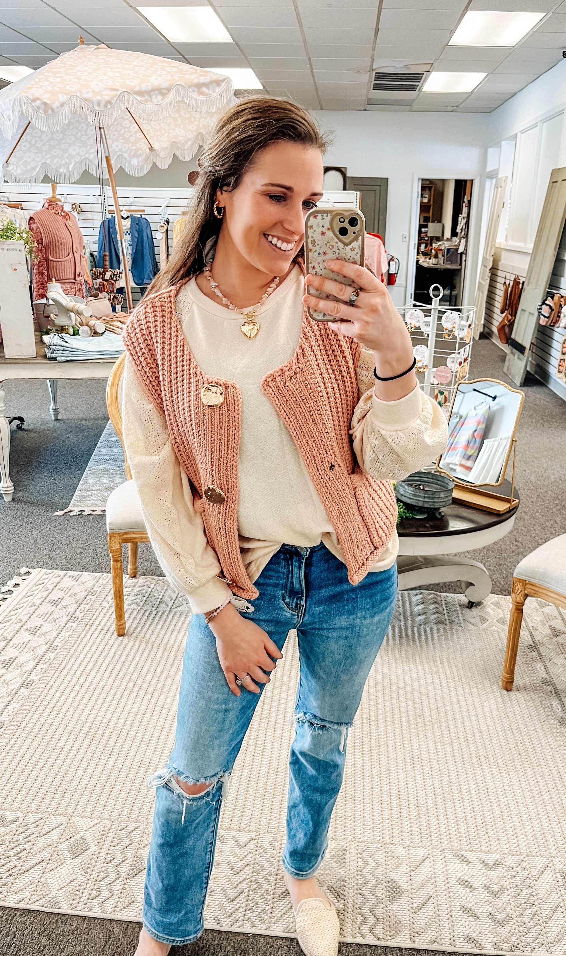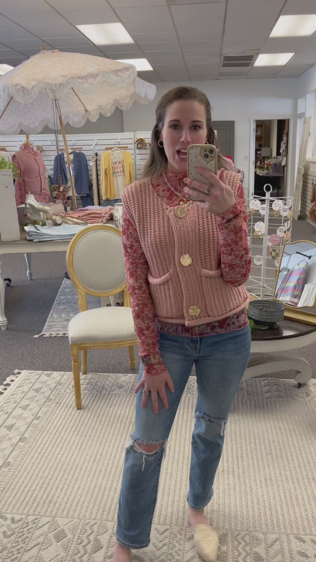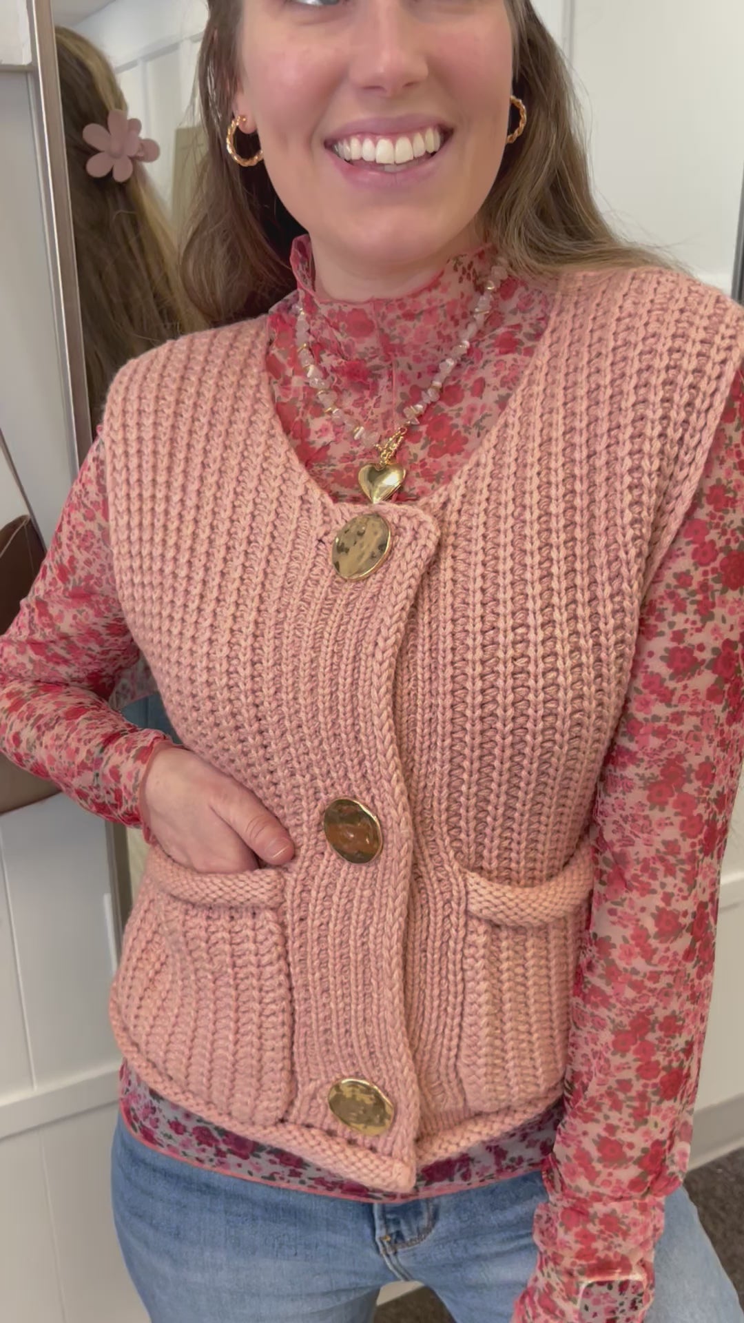 Spring into Style Knit Sweater Vest-Blush (S-3X)