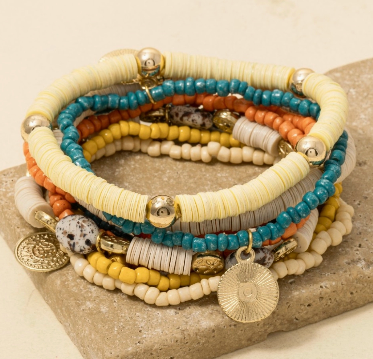 Embrace the beauty of the season with the Stones Of Fall Bracelet Set. This thoughtfully curated stack combines warm, earthy tones to add depth and style to any outfit. Designed for comfortable layering, these bracelets bring a cozy, elegant touch that effortlessly enhances your look from day to night.